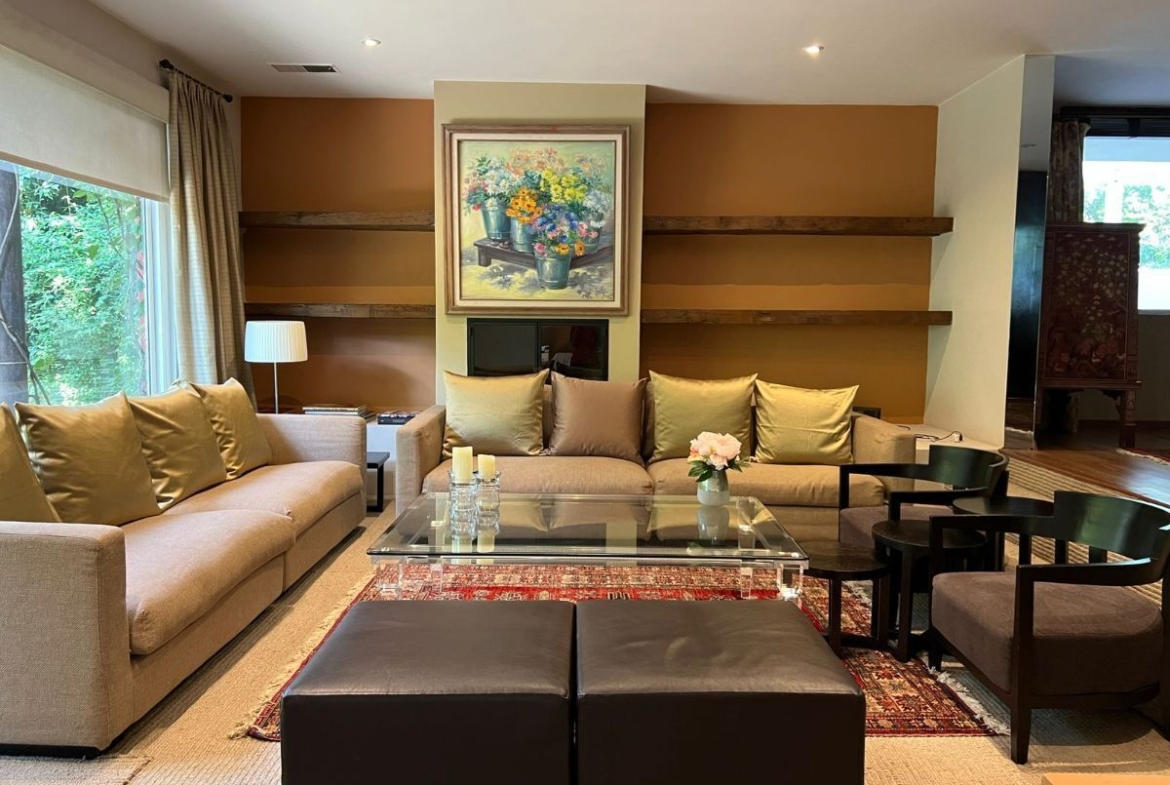 Exclusiva casa en renta en Bosques de las Lomas, rodeada de abundante vegetación, excelente luz natural y una temperatura cálida que invita a disfrutar cada espacio.